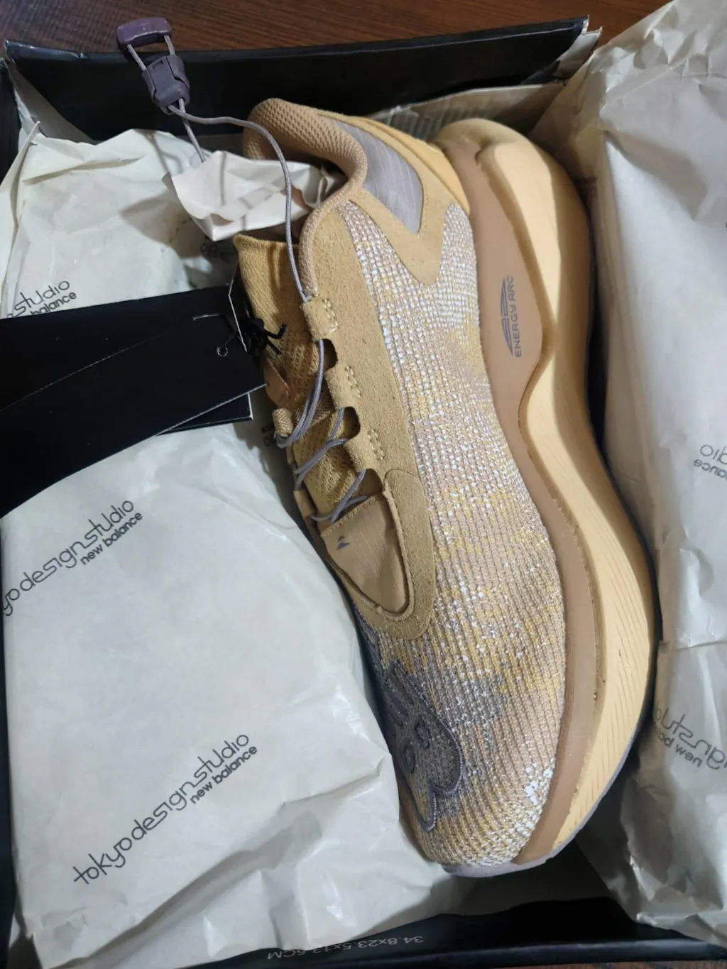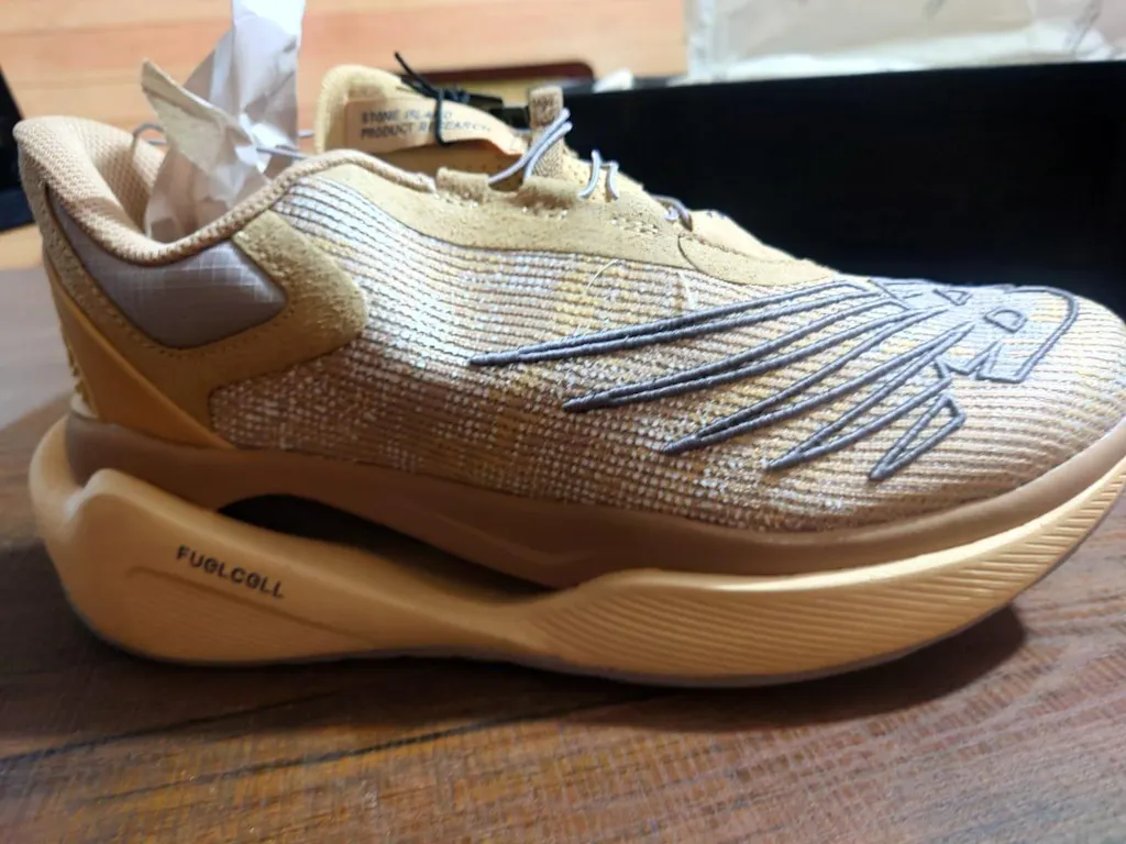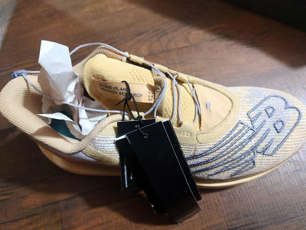 The NB X Stone Island Fuelcell C1 "Tan" is a high-performance running shoe collaboration with Stone Island and Tokyo Design Studio. Made with sustainable materials, the upper boasts a subtle camouflage pattern inspired by Stone Island's archives. A magnetic speed lacing system provides convenience, while the bulky FuelCell midsole and carbon fiber plate offer responsive cushioning and support.